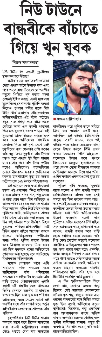 নিউ টাউনে বান্ধবীকে বাঁচাতে গিয়ে খুন যুবক