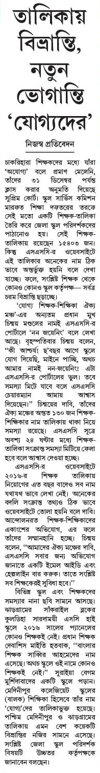 এই তালিকার অনেকের নাম ঠিক ভাবে অন্তর্ভুক্ত হয়নি বলে দেখা যাচ্ছে। ফলে, সংশ্লিষ্ট শিক্ষক থেকে কোনও কোনও স্কুল কর্তৃপক্ষ— সর্বত্র চরম বিভ্রান্তি ছড়াচ্ছে।