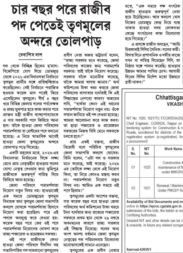 ওই পদে রাজীবকে কেন? হাওড়া জেলা পরিষদে দীর্ঘদিন সহ সভাধিপতির পদ সামলানো তৃণমূলের প্রবীণ নেতা অজয় ভট্টাচার্য বলেন, ‘‘রাজ্য সরকার মনে করেছে, জেলা পরিষদের কাজের জন্য পরামর্শের দরকার। তাই তাঁকে নিয়োগ করেছে। সরকার যাঁকে মনোনীত করেছে, তাঁকে আমরা স্বাগত জানাব।’’ অর্থ কমিশনের টাকা খরচ করতে জেলা পরিষদের লাগাতার ব্যর্থতাই কি এই সিদ্ধান্তের নেপথ্যে কারণ? অজয়ের দাবি, ‘‘ব্যর্থতা কেন? এই ধরনের পরামর্শদাতা নিয়োগ নতুন নয়। ওঁকে সম্মান জানিয়ে ওই পদ দেওয়া হয়েছে। আমরা আলোচনা করে কাজ করব। তা ছাড়া পঞ্চায়েত ও গ্রামোন্নয়ন দফতরের নিজস্ব বিধি মেনে সকলকে চলতে হবে।’’
