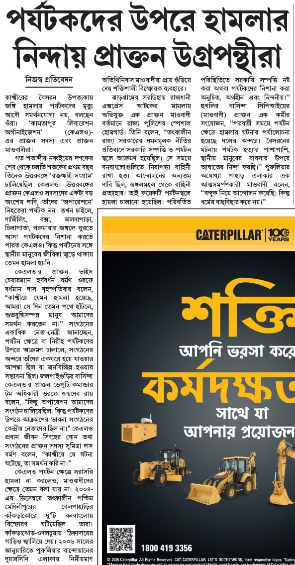 কাশ্মীরের বৈসরন উপত্যকায় জঙ্গি হামলায় পর্যটকদের মৃত্যু আদৌ সমর্থনযোগ্য নয়, বলছেন ওঁরা। ‘কামতাপুর লিবারেশন অর্গানাইজ়েশন’ (কেএলও)-এর প্রাক্তন সদস্য এবং প্রাক্তন মাওবাদীরা।