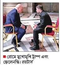 রোমে মুখোমুখি ট্রাম্প এবং জ়েলেনস্কি। রয়টার্স