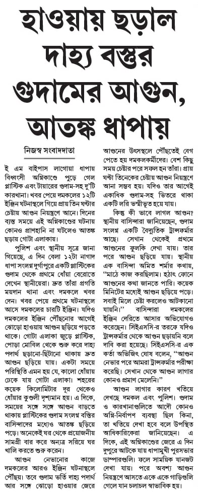 হাওয়ায় ছড়াল দাহ্য বস্তুর গুদামের আগুন, আতঙ্ক ধাপায়