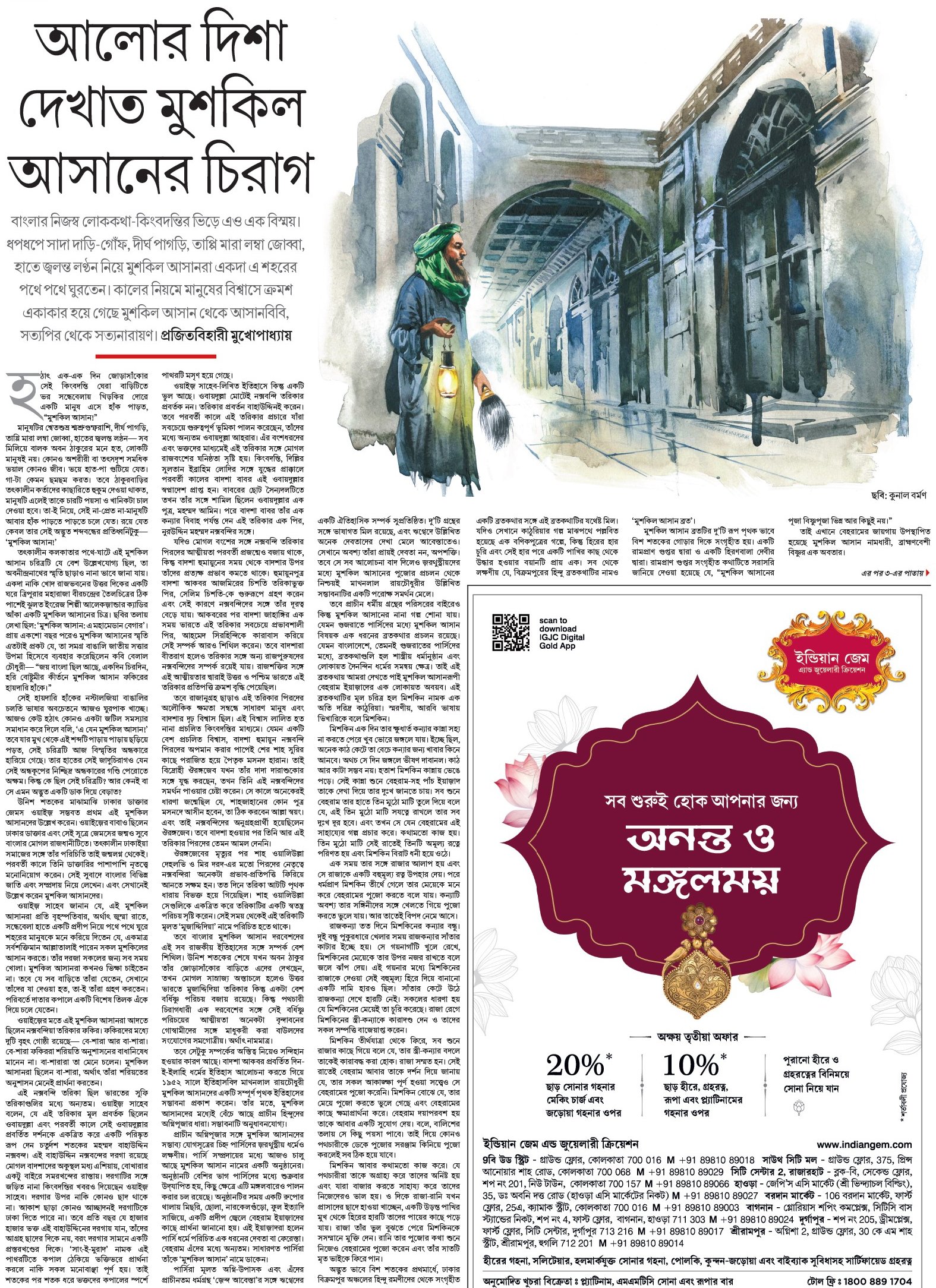 মানুষটির শ্বেতশুভ্র শ্মশ্রুগুম্ফরাশি, দীর্ঘ পাগড়ি, তাপ্পি মারা লম্বা জোব্বা, হাতের জ্বলন্ত লণ্ঠন— সব মিলিয়ে বালক অবন ঠাকুরের মনে হত, লোকটি মানুষই নয়। কোনও অশরীরী বা তৎসদৃশ সমধিক ভয়াল কোনও জীব। ভয়ে হাত-পা গুটিয়ে যেত। গা-টা কেমন ছমছম করত। তবে ঠাকুরবাড়ির তৎকালীন কর্তাদের কাছারিতে হুকুম দেওয়া থাকত, মানুষটি এলেই তাকে চারটি পয়সা ও খানিকটা চাল দেওয়া হবে। তা-ই নিয়ে, সেই না-প্রেত না-মানুষটি আবার হাঁক পাড়তে পাড়তে চলে যেত। রয়ে যেত কেবল তার সেই অদ্ভুত শব্দবন্ধের প্রতিধ্বনিটুকু— ‘মুশকিল আসান!’