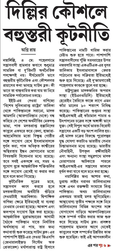 নয়াদিল্লির জন্য আশার কথা, ডুরান্ড লাইন বরাবর তালিবানদের সঙ্গে এখন রক্তক্ষয়ী সংঘাতে লিপ্ত পাকিস্তান। অথচ তালিবানদের একসময় তারাই মদত জুগিয়েছিল। আস্থাযোগ্য তৃতীয় পক্ষকে সঙ্গে নিয়ে তালিবানদের বিভিন্ন অংশের সঙ্গে যোগাযোগ বাড়িয়ে আফগানিস্তানের সঙ্গে সম্পর্ক গভীর করার কাজ শুরু করে দিয়েছে সাউথ ব্লক। প্রসঙ্গত পহেলগাম হামলার আগে থেকেই কাবুলের সঙ্গে সম্পর্কের উন্নতির কাজ শুরু হয়েছিল। তাই এই আপৎকালীন