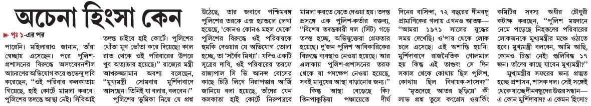 মুখ্যমন্ত্রীর সফরের জন্য প্রস্তুত হচ্ছে প্রশাসন, শাসক দল। সেই সঙ্গেই থেকে যাচ্ছে দীনবন্ধুদের উত্তর সন্ধান— এ কোন মুর্শিদাবাদ? এ কেমন হিংসা?