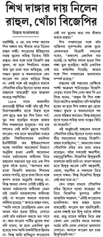 শিখ দাঙ্গার দায় নিলেন রাহুল, খোঁচা বিজেপির