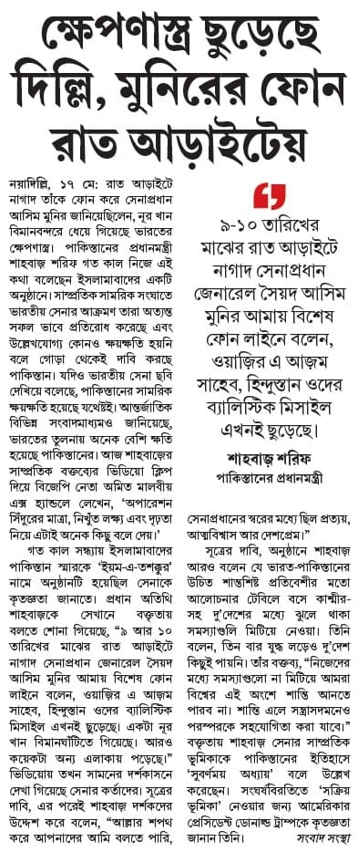 ক্ষেপণাস্ত্র ছুড়েছে দিল্লি, মুনিরের ফোন রাত আড়াইটেয়
