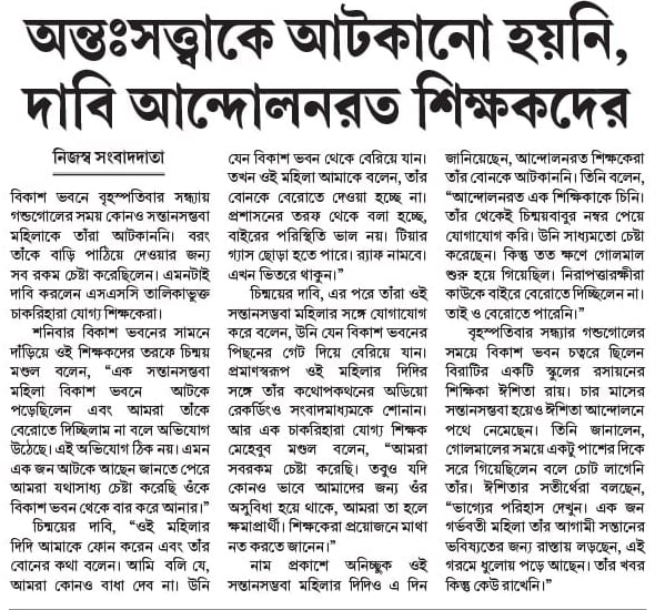 অন্তঃসত্ত্বাকে আটকানো হয়নি, দাবি আন্দোলনরত শিক্ষকদের