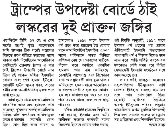 ট্রাম্পের উপদেষ্টা বোর্ডে ঠাঁই লস্করের দুই প্রাক্তন জঙ্গির