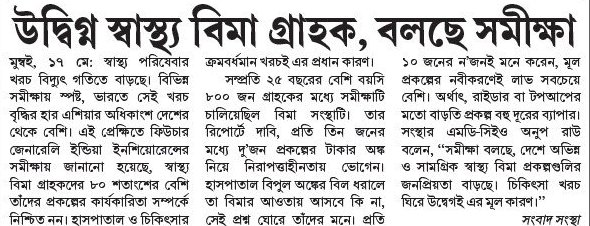 উদ্বিগ্ন স্বাস্থ্য বিমা গ্রাহক, বলছে সমীক্ষা