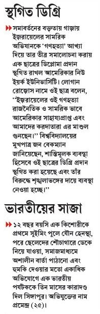 }} সমাবর্তনের বক্তৃতায় গাজ়ায় ইজ়রায়েলের সামরিক অভিযানকে ‘গণহত্যা’ আখ্যা দিয়ে তার তীব্র সমালোচনা করায় এক ছাত্রের ডিপ্লোমা প্রদান স্থগিত রাখল আমেরিকার নিউ ইয়র্ক ইউনিভার্সিটি। লোগান রোজ়োস নামে ওই ছাত্র বলেন, ‘‘ইজ়রায়েলের ওই গণহত্যা রাজনৈতিক ও সামরিক ভাবে আমেরিকার সাহায্যপ্রাপ্ত এবং আমাদের করদাতারা এর মাশুল গুনছেন।’’ বিশ্ববিদ্যালয়ের মুখপাত্র জন বেকম্যান জানিয়েছেন, শাস্তিমূলক ব্যবস্থা হিসেবে ওই ছাত্রের ডিগ্রি প্রদান স্থগিত করা হয়েছে এবং তাঁর বিরুদ্ধে শৃঙ্খলাভঙ্গের দায়ে ব্যবস্থা নেওয়া হচ্ছে।’’