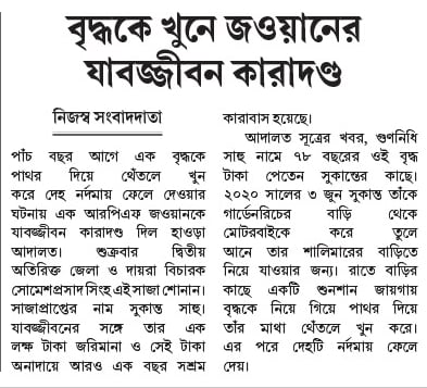 বৃদ্ধকে খুনে জওয়ানের যাবজ্জীবন কারাদণ্ড