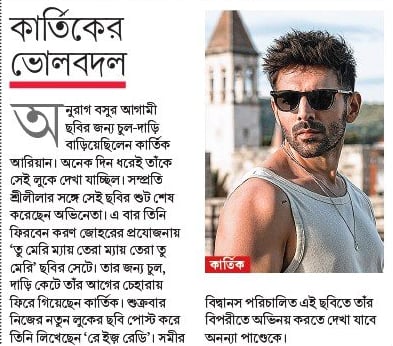অনুরাগ বসুর আগামী ছবির জন্য চুল-দাড়ি বাড়িয়েছিলেন কার্তিক আরিয়ান। অনেক দিন ধরেই তাঁকে সেই লুকে দেখা যাচ্ছিল। সম্প্রতি শ্রীলীলার সঙ্গে সেই ছবির শুট শেষ করেছেন অভিনেতা। এ বার তিনি ফিরবেন করণ জোহরের প্রযোজনায় ‘তু মেরি ম্যায় তেরা ম্যায় তেরা তু মেরি’ ছবির সেটে। তার জন্য চুল, দাড়ি কেটে তাঁর আগের চেহারায় ফিরে গিয়েছেন কার্তিক। শুক্রবার নিজের নতুন লুকের ছবি পোস্ট করে তিনি লিখেছেন ‘রে ইজ় রেডি’। সমীর বিদ্বানস পরিচালিত এই ছবিতে তাঁর বিপরীতে অভিনয় করতে দেখা যাবে অনন্যা পাণ্ডেকে।
