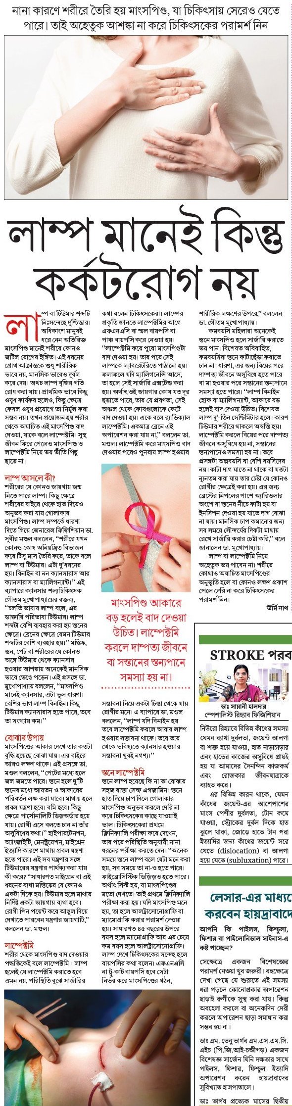 লাম্প বা লাম্পেক্টমি নিয়ে অহেতুক ভয় পাবেন না। শরীরে কোথাও অযাচিত মাংসপিণ্ডের অনুভূতি হলে বা কোনও লক্ষণ প্রকাশ পেলে দেরি না করে চিকিৎসকের পরামর্শ নিন।