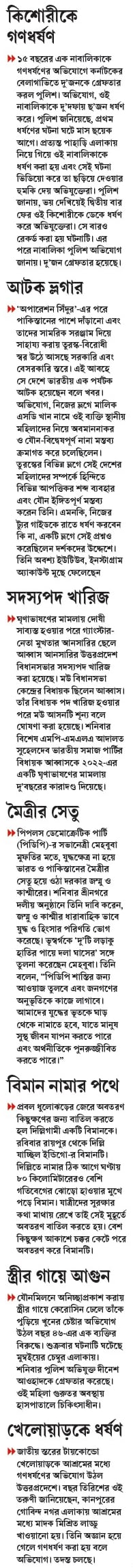 }} ১৫ বছরের এক নাবালিকাকে গণধর্ষণের অভিযোগে কর্নাটকের বেলাগাভিতে দু’জনকে গ্রেফতার করল পুলিশ। অভিযোগ, ওই নাবালিকাকে দু’দফায় ছ’জন ধর্ষণ করে। পুলিশ জনিয়েছে, প্রথম ধর্ষণের ঘটনা ঘটে মাস ছয়েক আগে। প্রত্যন্ত পাহাড়ি এলাকায় নিয়ে গিয়ে ওই নাবালিকাকে ধর্ষণ করা হয় এবং সেই ঘটনা ভিডিয়ো করে তা ছড়িয়ে দেওয়ার হুমকি দেয় অভিযুক্তেরা। পুলিশ জানায়, ভয় দেখিয়েই দ্বিতীয় বার ফের ওই কিশোরীকে ডেকে ধর্ষণ করে অভিযুক্তেরা। সে বারও রেকর্ড করা হয় ঘটনাটি। এর পরে নাবালিকা পুলিশ অভিযোগ জানায়। দু’জন গ্রেফতার হয়েছে।