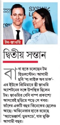 বাবা হতে চলেছেন টম হিডলস্টোন। আগামী ছবি ‘দ্য লাইফ অব চাক’-এর ইউকে প্রিমিয়ারে স্ত্রী জ়াওয়ি অ্যাশটনের সঙ্গে উপস্থিত ছিলেন টম। জ়াওয়ির বেবি বাম্প প্রকাশ্যে আসতেই ছড়িয়ে পড়ে সে খবর। তাঁদের একটি বছর তিনেকের ছেলেও আছে। অভিনেতার হাতে রয়েছে ‘অ্যাভেঞ্জার্স: ডুমসডে’, যার মুক্তি আগামী বছর।
