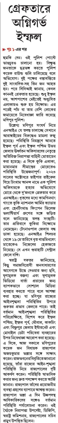 গ্রেফতারে অগ্নিগর্ভ ইম্ফল