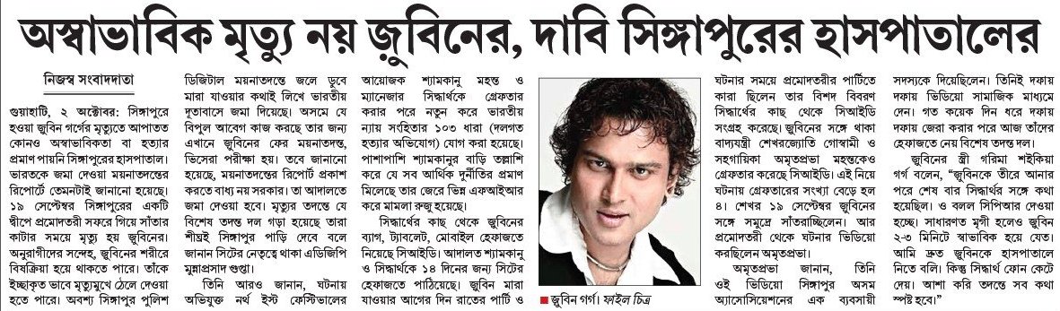 অস্বাভাবিক মৃত্যু নয় জ়ুবিনের, দাবি সিঙ্গাপুরের হাসপাতালের