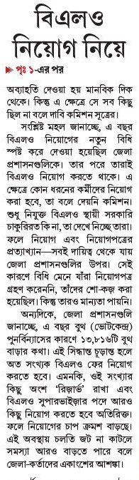 সংশ্লিষ্ট মহল জানাচ্ছে, এ বছর বিএলও নিয়োগের নতুন বিধি স্পষ্ট করে দেওয়া হয়েছিল জেলা প্রশাসনগুলিকে। তার পরে তারাই বিএলও নিয়োগ করতে থাকে। এ ক্ষেত্রে কোন ধরনের কর্মীদের নিয়োগ করা হবে, তা বলে দেয়নি কমিশন। শুধু নিযুক্ত বিএলও স্থায়ী সরকারি চাকুরিরত কি না, তা দেখে নিচ্ছে তারা। ফলে নিয়োগ এবং নিয়োগপত্রের প্রত্যাখ্যান—সবই দায়িত্ব থেকে যায় জেলা প্রশাসনগুলির উপর। সেই কারণে বিধি মেনে যাঁরা নিয়োগপত্র গ্রহণ করেননি, তাঁদের শো-কজ় করা হয়েছিল। কিন্তু তারও মান্যতা পায়নি।