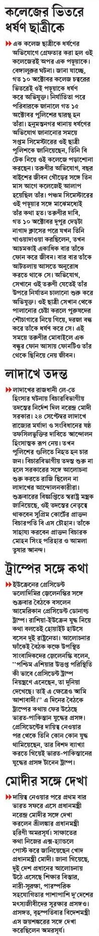 }} ইউক্রেনের প্রেসিডেন্ট ভলোদিমির জ়েলেনস্কির সঙ্গে শুক্রবার বৈঠকে বসলেন আমেরিকান প্রেসিডেন্ট ডোনাল্ড ট্রাম্প। রাশিয়া-ইউক্রেন যুদ্ধ নিয়ে কথা বলতেই হোয়াইট হাউসে বসেন দুই রাষ্ট্রনেতা। আলোচনার ফাঁকেই বৈঠক কক্ষে উপস্থিত সাংবাদিকদের জ়েলেনস্কি বলেন, ‘‘পশ্চিম এশিয়ার উত্তপ্ত পরিস্থিতি কী ভাবে প্রেসিডেন্ট ট্রাম্প নিয়ন্ত্রণে এনেছেন, তা দুনিয়া দেখেছে। তাই এ ক্ষেত্রেও আমি আশাবাদী।’’ এ দিনের বৈঠকে ট্রাম্পের কথায় ফের উঠেছে ভারত-পাকিস্তান যুদ্ধের প্রসঙ্গ। প্রেসিডেন্টের দায়িত্ব নেওয়ার পর থেকে তিনি কোন কোন যুদ্ধ থামিয়েছেন, তার বিশদ ব্যাখ্যা করতে গিয়েই ভারত-পাকিস্তানের যুদ্ধের প্রসঙ্গ টানেন ট্রাম্প।