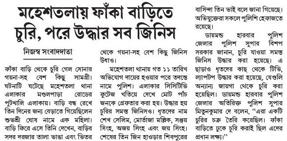 মহেশতলায় ফাঁকা বাড়িতে চুরি, পরে উদ্ধার সব জিনিস