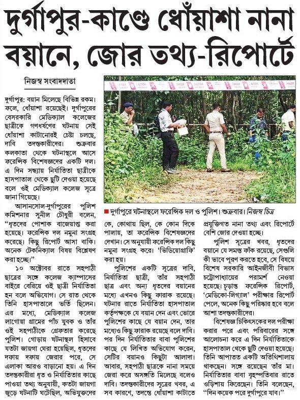 দুর্গাপুর-কাণ্ডে ধোঁয়াশা নানা বয়ানে, জোর তথ্য-রিপোর্টে