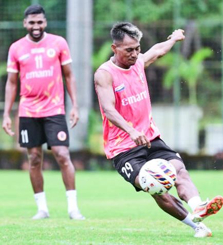মরিয়া: চেন্নাইয়িন দ্বৈরথের প্রস্তুতিতে বিপিন। সৌজন্য ইস্টবেঙ্গল
