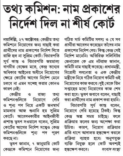 তথ্য কমিশন: নাম প্রকাশের নির্দেশ দিল না শীর্ষ কোর্ট