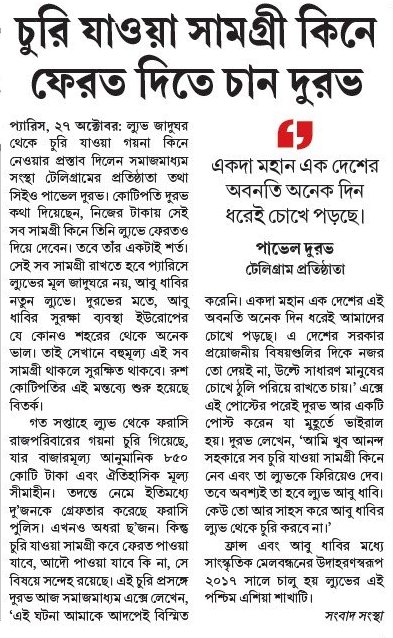 প্যারিস, ২৭ অক্টোবর: ল্যুভ জাদুঘর থেকে চুরি যাওয়া গয়না কিনে নেওয়ার প্রস্তাব দিলেন সমাজমাধ্যম সংস্থা টেলিগ্রামের প্রতিষ্ঠাতা তথা সিইও পাভেল দুরভ। কোটিপতি দুরভ কথা দিয়েছেন, নিজের টাকায় সেই সব সামগ্রী কিনে তিনি ল্যুভে ফেরতও দিয়ে দেবেন। তবে তাঁর একটাই শর্ত। সেই সব সামগ্রী রাখতে হবে প্যারিসে ল্যুভের মূল জাদুঘরে নয়, আবু ধাবির নতুন ল্যুভে। দুরভের মতে, আবু ধাবির সুরক্ষা ব্যবস্থা ইউরোপের যে কোনও শহরের থেকে অনেক ভাল। তাই সেখানে বহুমূল্য এই সব সামগ্রী থাকলে সুরক্ষিত থাকবে। রুশ কোটিপতির এই মন্তব্যে শুরু হয়েছে বিতর্ক।